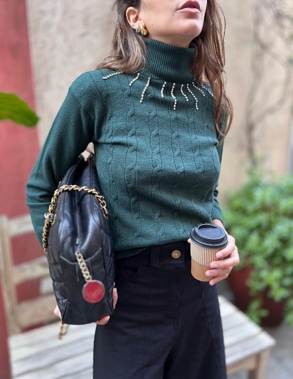 En bremer con strass bordado, disponible en NEGRO, CRUDO Y PETRÓLEO.