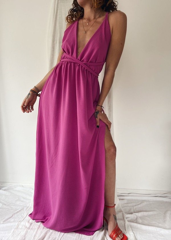 DESCRIPCION: en crepe bubble NEGRO, VERDE, FUXCIA, MAGENTA , con tiras para regular los breteles.