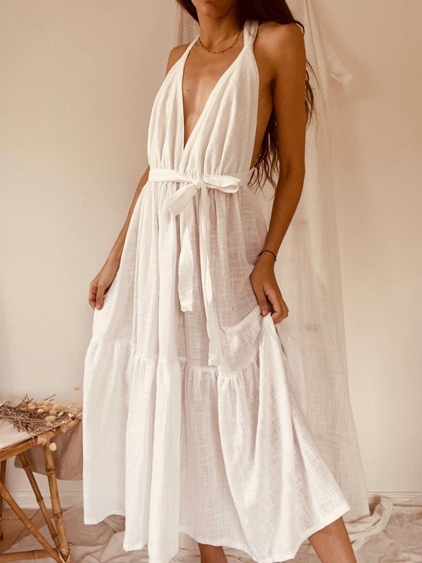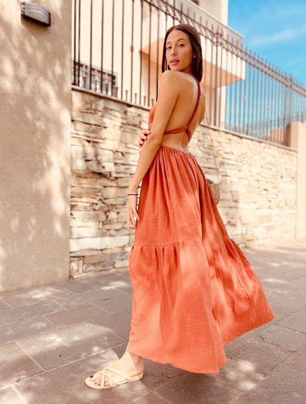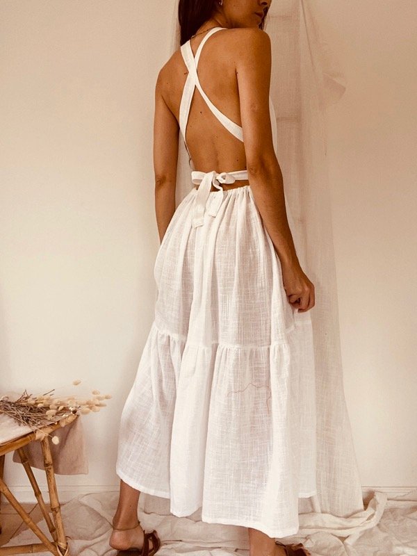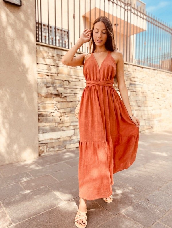 Confeccionado en algodón rústico, color BLANCO, LADRILLO, ESTAMPADO. Con elástico en la cintura y lazos para cambiar la forma de usarlo!